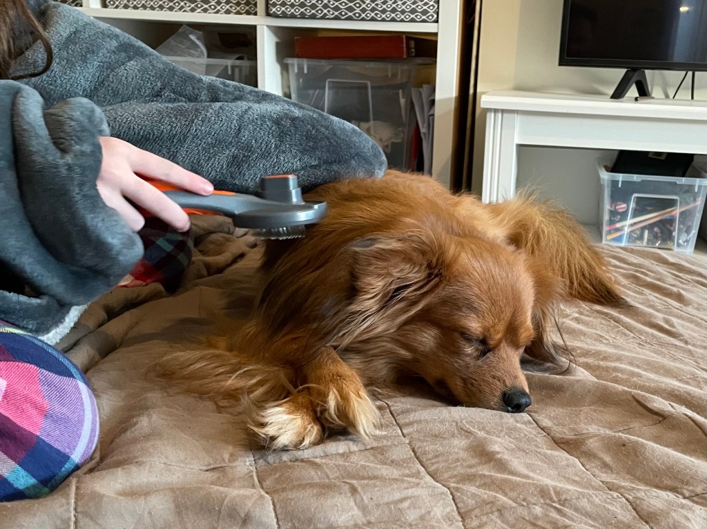 Máiloo is super cute and enjoys baths, running around outside and relaxing on our sofa; he is very good at chasing a ball.